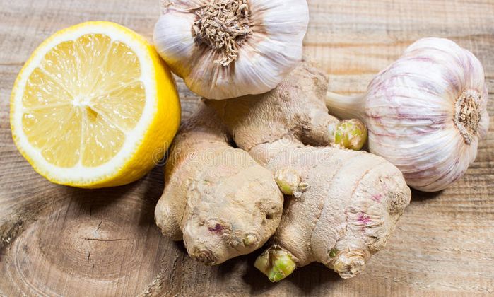 Se debe enjuagar bien los limones y cortarlos en trozos. Ahora se debe agregar el jengibre pelado y el ajo y poner a todos en una licuadora. Licuar la mezcla hasta que se vuelve suave y luego se coloca en una olla.