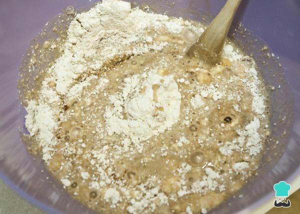 Dato: La harina integral no se puede tamizar, por eso mezcla los ingredientes secos y agrega aire removiendo con un tenedor o cuchara y para evitar grumos añádelos a ala mezcla de a poco.