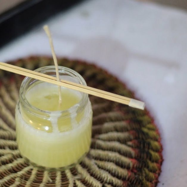 Toma una porción del aceite usado y añádele unas gotas de algún aceite esencial. Une todo a la cera y dale la forma que prefieras.