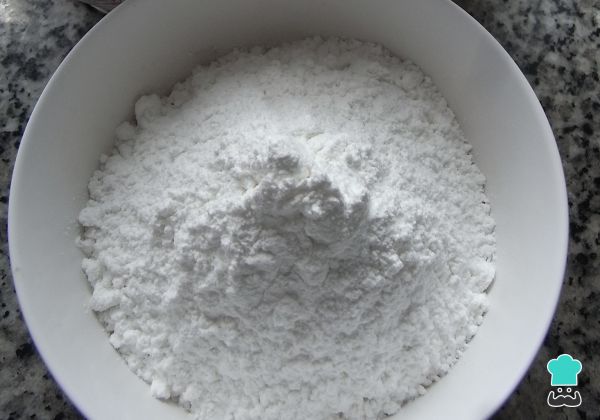 1. Pon la harina en un envase amplio y añade en el centro la leche y la levadura. Esto se llama un volcán de harina.