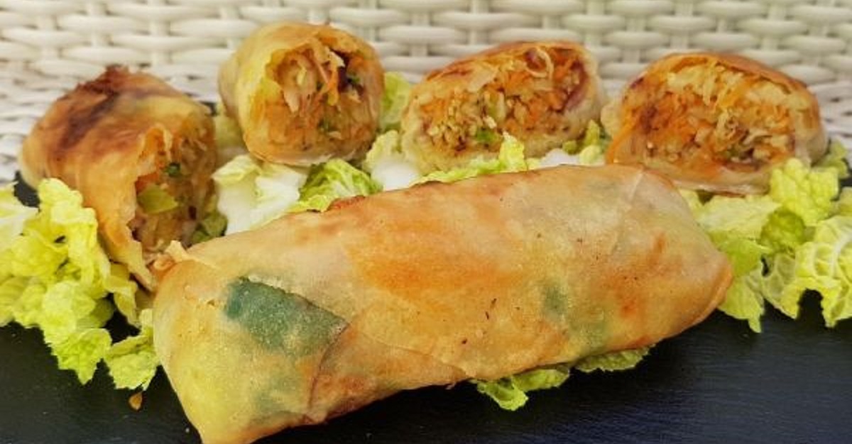 Este exquisito clásico de la gastronomía china consiste en rellenar láminas de masa especial con verduras cortadas en juliana, a veces añadiendo carne como ingredientes extra. En la mayoría de los supermercados podemos encontrar de estos rollitos congelados listos para freír que pueden ser salvadores y bastante ahorradores de tiempo, pero el sabor deja mucho que desear.