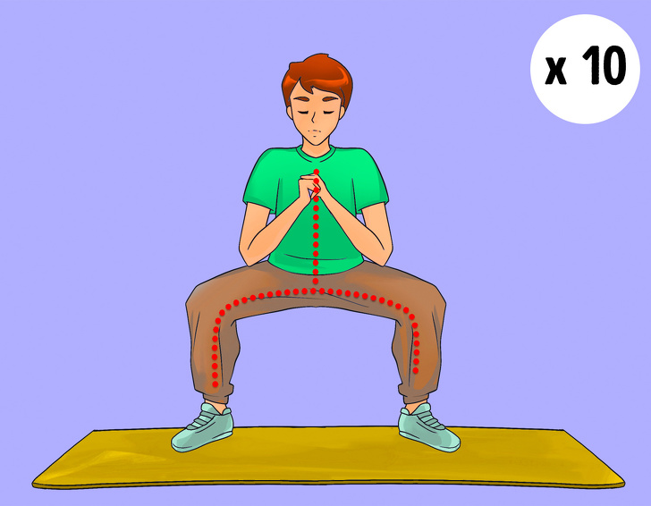 2. Haz una sentadilla con un ángulo de 90 grados y subes las manos por debajo de tu barbilla.