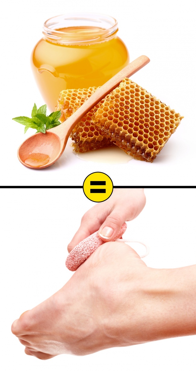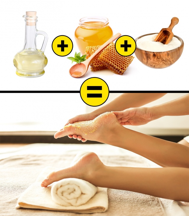 La harina de arroz exfolia, purifica y remineraliza la piel. La miel es un antiséptico natural que ayuda a sanar los pies agrietados. El vinagre es un ácido suave que suaviza y seca la piel muerta, haciéndola fácil de exfoliar.