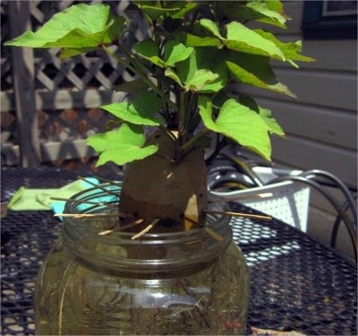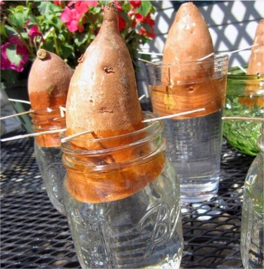 Si te gustan las batatas o papas dulces entonces considera cultivarlas tú mismo. Para ello necesitarás sumergir más de la mitad de una batata en un vaso de agua y dejarla en la parte baja de la ventana para que reciba un poco de luz solar. Luego, espera a que se formen los brotes, corta cada uno y colócalo en un recipiente con agua diferente. Una vez que las raíces han crecido lo suficiente puedes proceder a sembrarlas en tu jardín o huerto.