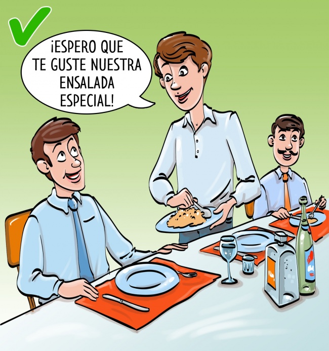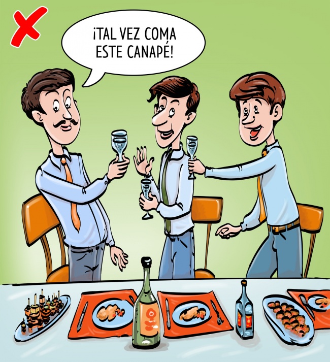 Aún si todo se ve demasiado apetitoso como para esperar, aunque tengas un hambre de 7 días, no comiences a comer solo ( nada, ni siquiera ese canapé que te mira directamente). En el restaurante esperamos que todos tengan sus pedidos para comenzar a comer. Si estamos en una casa, debemos esperar hasta que los anfitriones comiencen a comer.