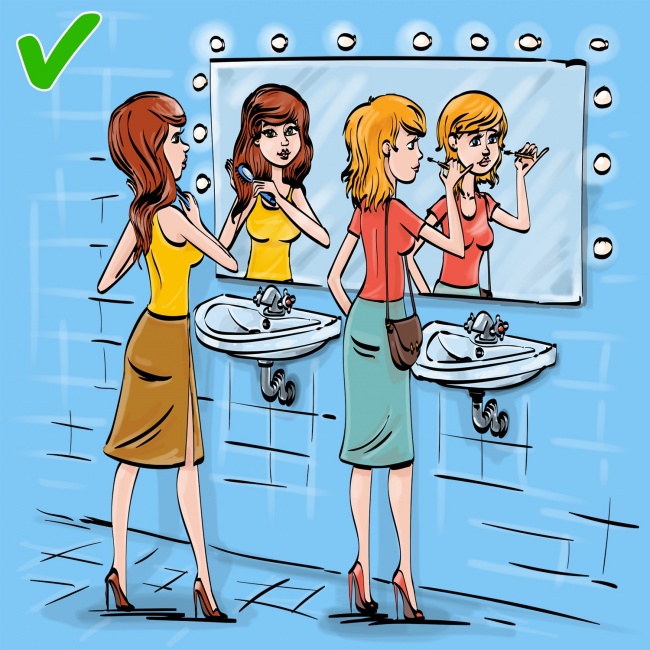 Arreglarse en público, incluso si nadie está mirando, está estrictamente prohibido. El peine, el palillo y el dedo con el que quieres rascarte la oreja, deben usarse solo en el baño.