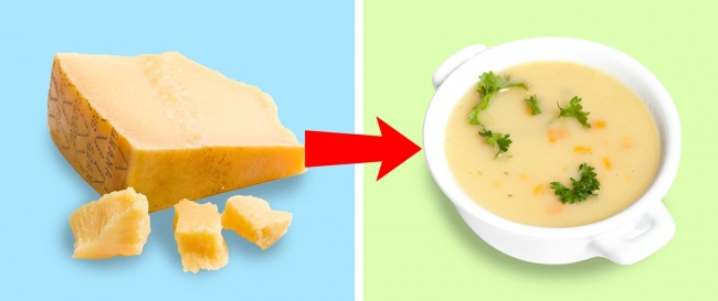 Podrían ser las cortezas de parmesano. Tales quesos son muy caros, por eso queremos usar hasta el último pedacito. Al añadir la corteza que sobró de este producto al caldo, podrás hacer el platillo más sabroso y nutritivo.