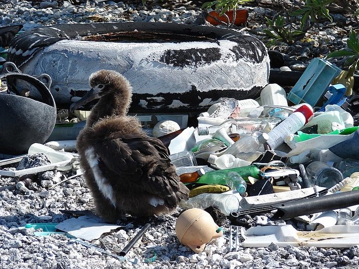 15.Albatros de Laysan en medio de basura debido a la abrumante contaminación