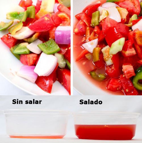 La sal hace que los vegetales pierdan agua más rápidamente, haciendo que las verduras sean más crujientes y acrecentando el sabor de las mismas considerablemente.