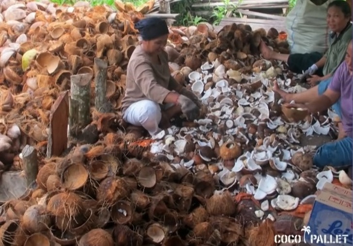 Los palets son construidos con la cáscara de cocos que se desperdicia un 85% de las veces