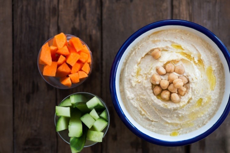 El hummus es un plato a base de garbanzos, muy fácil de preparar, solo debes triturar algunas garbanzos mezclados con ajo, comino, jugo de limón y si lo prefieres, tahini. Obtendrás una rica pasta llena de nutrientes y muy deliciosa.