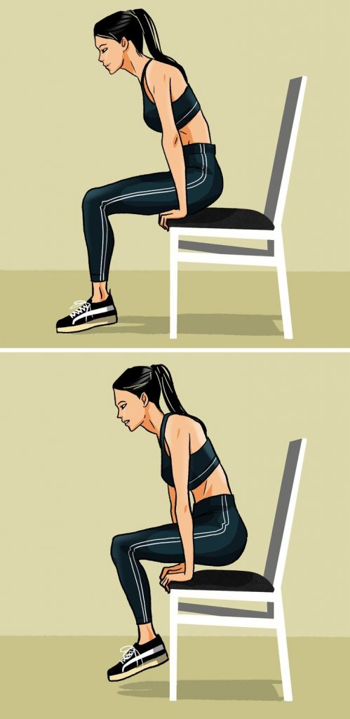 - Pon las manos en el borde de la silla y flecta ligeramente los codos
