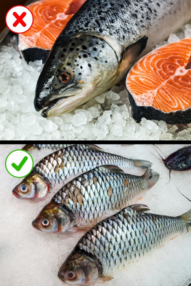 Por eso es mejor que aclares el lugar de pesca al comprar el producto, cuanto más lejos esté, mayor será la posibilidad de que estés comprando un pescado descongelado bajo la apariencia de refrigerado. Es mejor solo comprar el pescado refrigerado local. Teniendo en cuenta el hecho de que los peces se cultivan en granjas donde se pueden utilizar estimulantes para el crecimiento y antibióticos, entre más pequeño sea el tamaño del pescado, mejor.