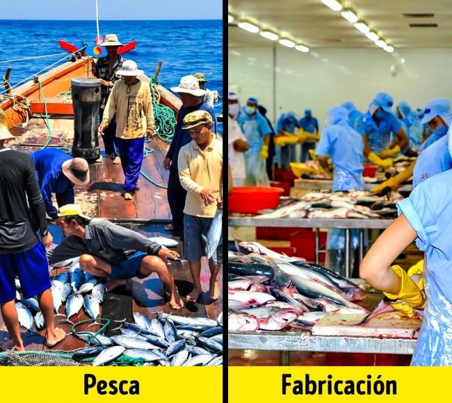 Casi todos los pescados refrigerados vienen de la acuicultura, que es un pez cultivado artificialmente en granjas.