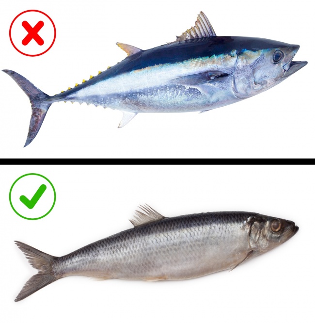 Entonces aparece la pregunta razonable ¿qué debemos comer? La mejor elección será arenque, merluzas, abadejo, saurio y sardinas. De los salmónidos son los corégonos, salmón rojo y salmón del pacífico. Las razas mencionadas prácticamente no son cultivadas en granjas, y en la lista de los peces contagiados por mercurio se encuentran en los últimos lugares.