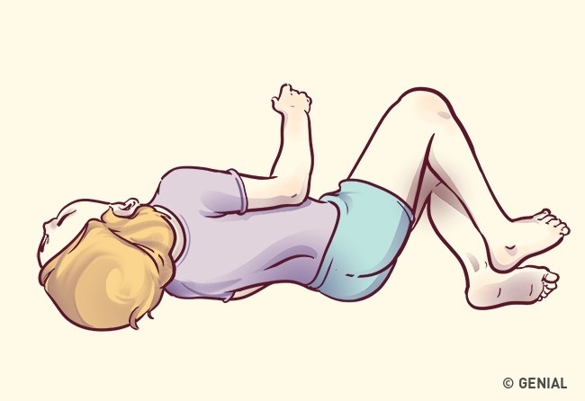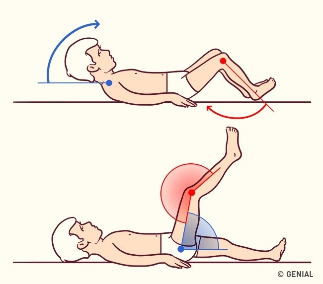 Incluso si consigue inclinar la cabeza hacia el tórax, enseguida se flexionan las piernas desde las rodillas. Es imposible que se estiren en esta postura. Este fenómeno se llama el signo de Brudzinski.