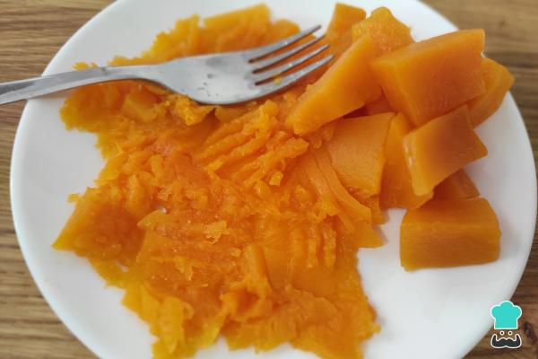 Dato: Puedes cocer la calabaza picada en trozos pequeños en una cacerola por 20 minutos, pinchándola para comprobar si está blanda.