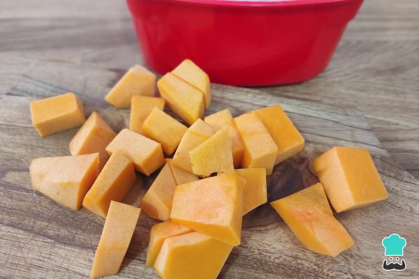 Dato: Puedes cocer la calabaza picada en trozos pequeños en una cacerola por 20 minutos, pinchándola para comprobar si está blanda.