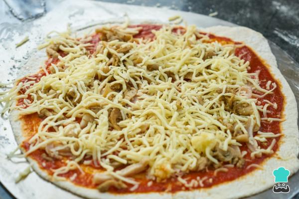 Después de que esté estirada, ya puedes añadir la salsa de tomate y los ingredientes para pizza que prefieras.