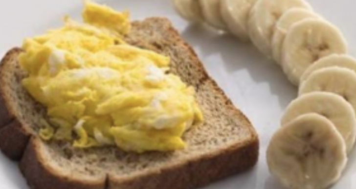 Desayuno: 1 tostada, 1 huevo, medio plátano.