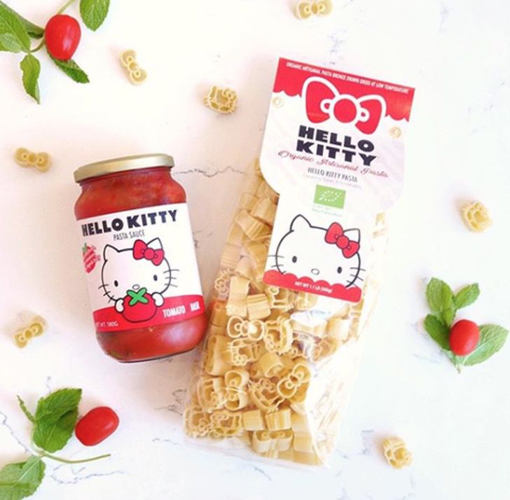Ahora, Sanrio se aventura al mundo culinario con pastas que tienen lazos y la carita de la tierna gatita, y una tierna salsa de tomate llena del rojo de la marca.