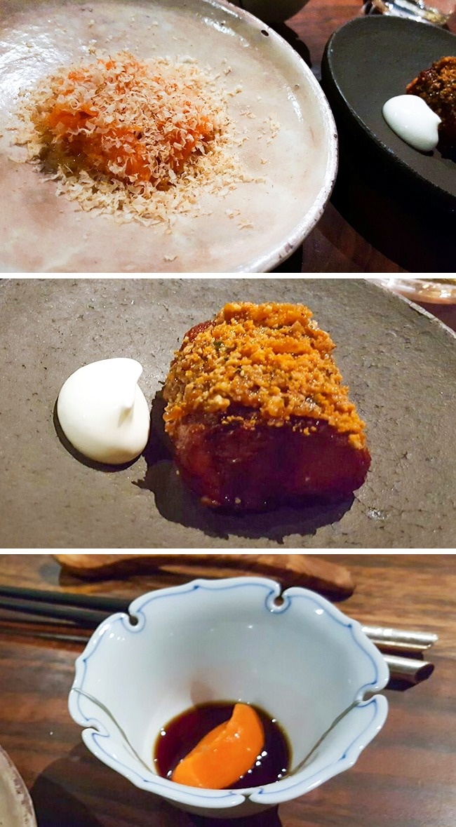 Posteriormente, le llevaron 3 tipos de calabazas horneadas. Todos estuvieron deliciosos, pero el de la tercera taza (puré de calabaza en aceite de semillas de calabaza) estaba un poco más salado de lo que debería.