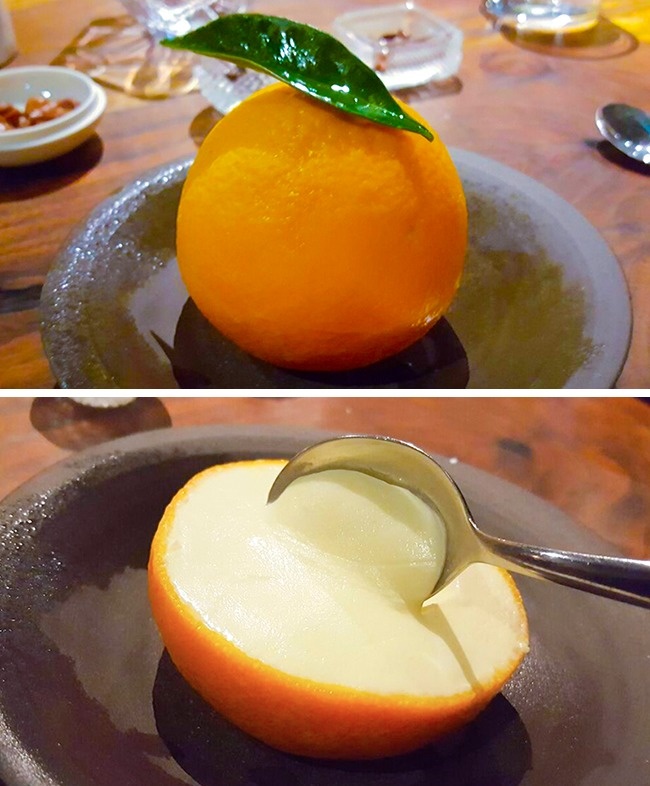 Después vino algo muy suave y cremoso que traía trozos de naranjas azucaradas.