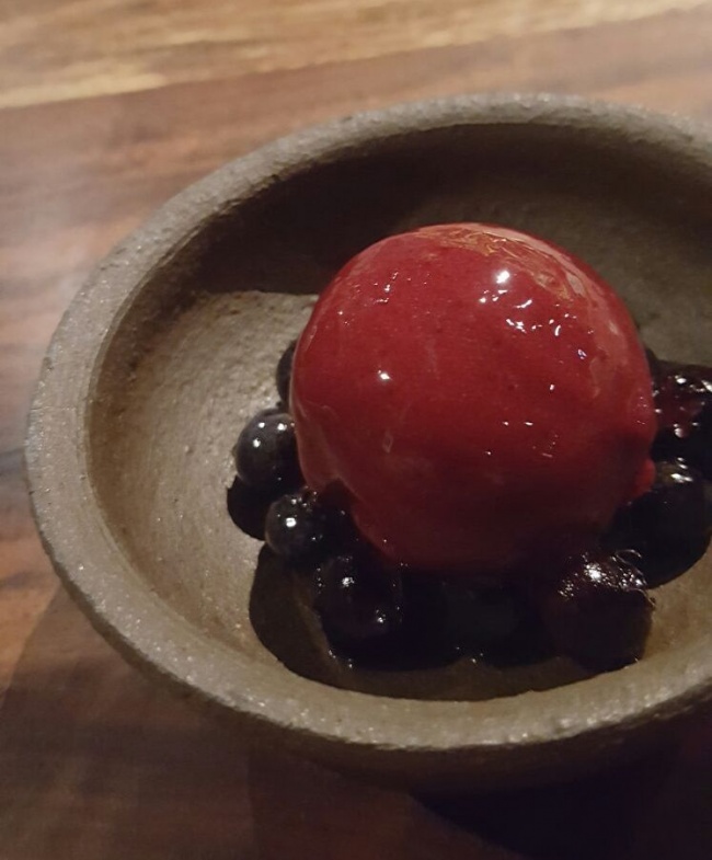 Un sorbete de arándanos con brandy y baya azucaradas. Este platillo es para ti si te gusta el brandy, pues contiene mucho de la bebida.
