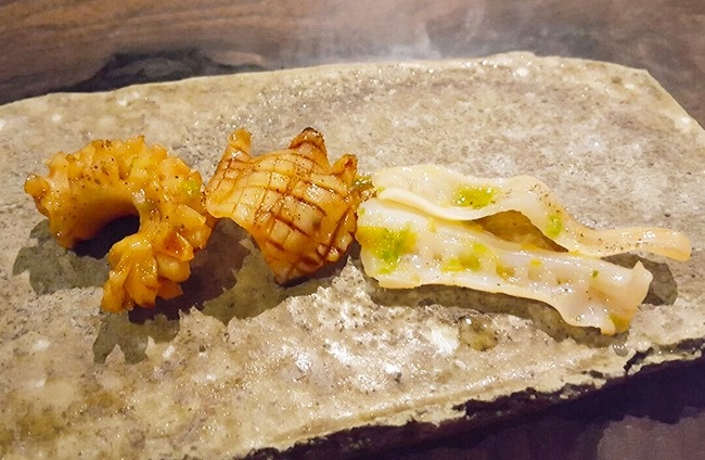 Pero luego vino un platillo que le causó euforia: el erizo marino en pudín de pan, bañado en salsa de trocitos de pan. Ella no ha sido la única en maravillarse con este plato, pues en muchas reseñas de los comensales del Saison es el erizo marino quien se lleva las mejores palabras.