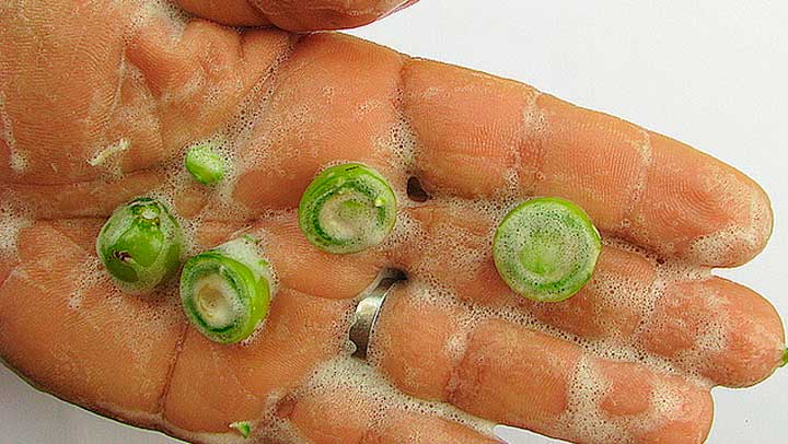 Para detergentes de loza o shampoo, poner las nueces en agua a más de 30 grados y dejarlas reposar alrededor de 5 a 10 minutos. Las nueces comenzarán a disolverse y quedará listo el detergente para ser utilizado.