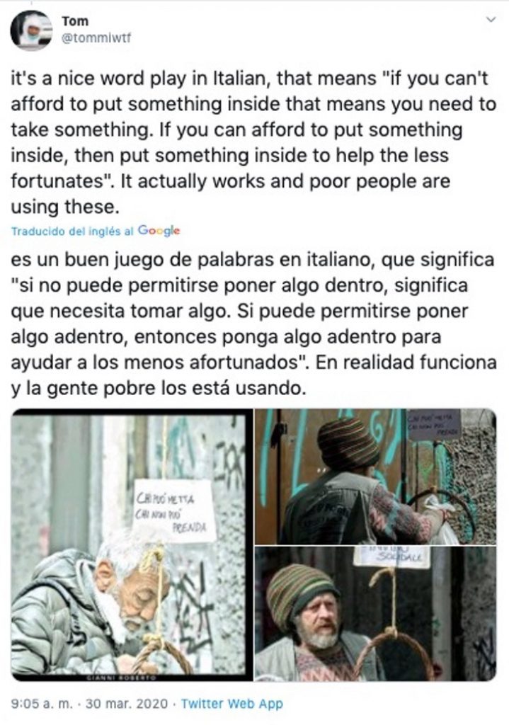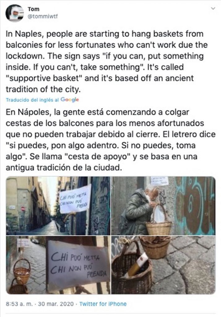 A través de un Tweet se popularizó el plan “panaro solidale” (cesta solidaria). El hilo fue creado por la cuenta @Tommiwtf
