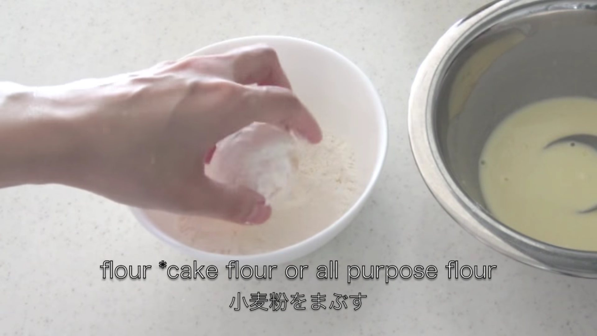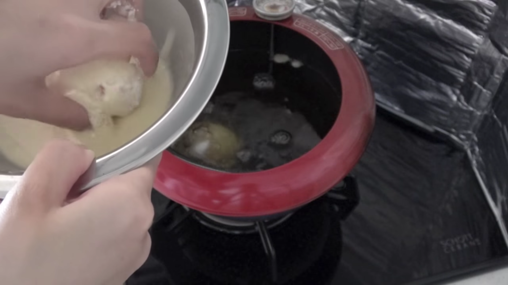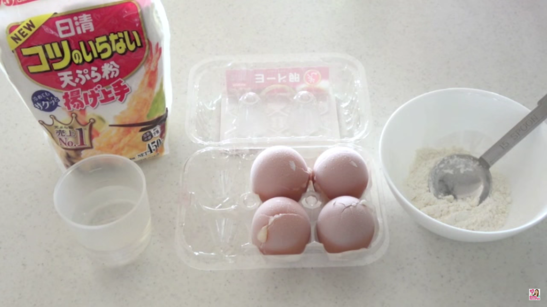 3. Reboza los huevos primero en harina y luego en la masa de tempura.