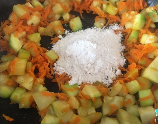 Agregar las zanahorias peladas y ralladas y dejar cocinar otros 2 minutos más. Pasado este tiempo, retirar los dientes de ajo.