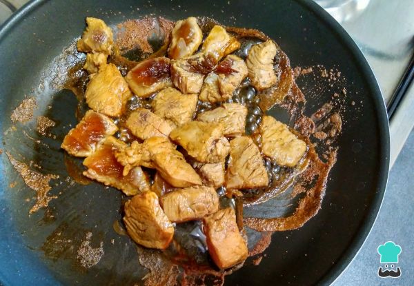 Lo más probable es que empiece a formar un caramelo en la sartén, esto es por la miel, pero no te preocupes, no quiere decir que se esté quemando.