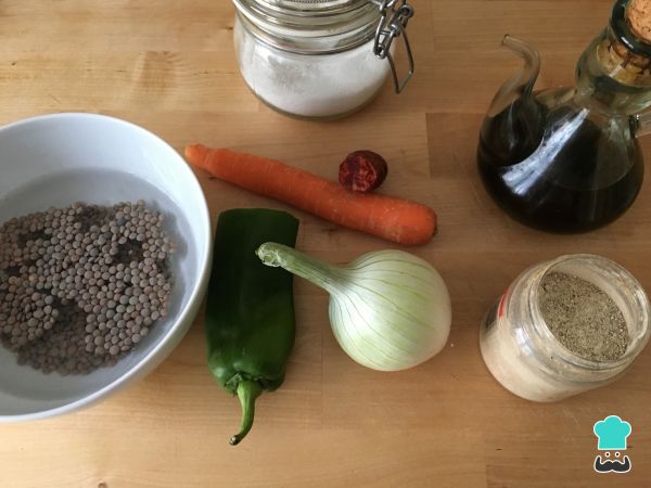 Primero, se debe reunir todos los ingredientes para preparar estas lentejas con chorizo fáciles. Recuerda que para cocinar legumbres como estas, debes ponerlas en remojo al menos 2 horas antes de su preparación.