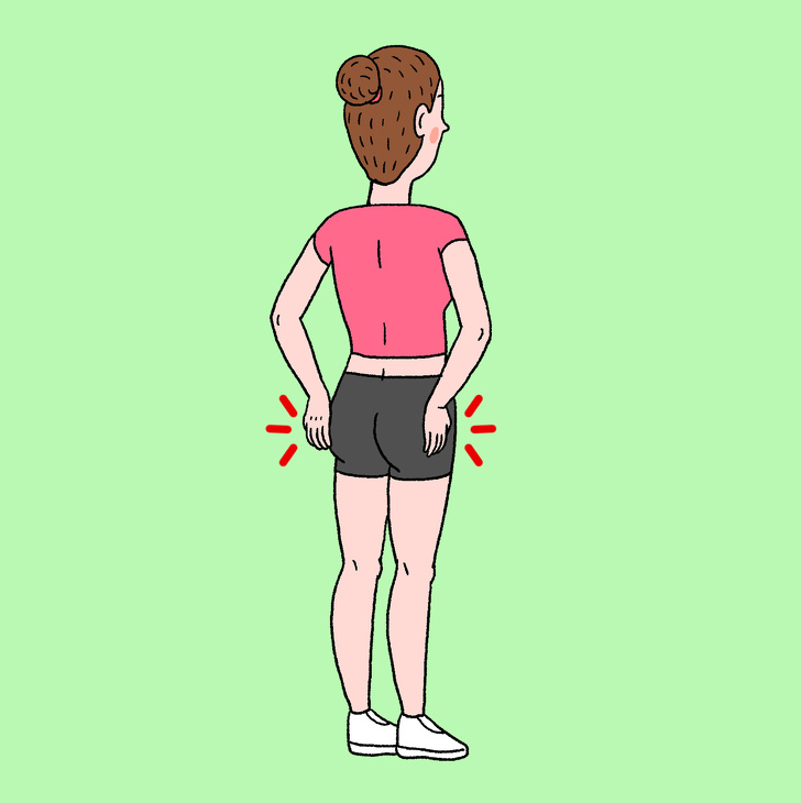 En una posición recta, con la palma y puño del brazo izquierdo golpea todo el lado derecho de la espalda e intentando alcanzar los lugares menos accesibles. Luego, con la mano derecha da 15 palmaditas por el lado derecho, y después con la palma izquierda o el puño, golpea con la palma tu glúteo izquierdo. Haz lo mismo en ambos lados de tu cuerpo, de 50 a 100 veces por cada uno.