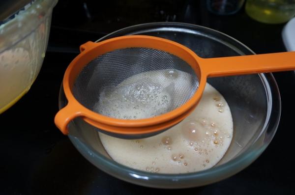6. Una vez mezclado lo pasamos por un colador y reservamos.