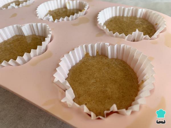 Cuando la masa ya esté reposada, precalienta el horno a 180 ºC con calor arriba y abajo y mientras esto ocurre pon las cápsulas de papel para magdalenas en un molde para este tipo de preparaciones y rellena cada molde ocupando3/4 partes de su capacidad.