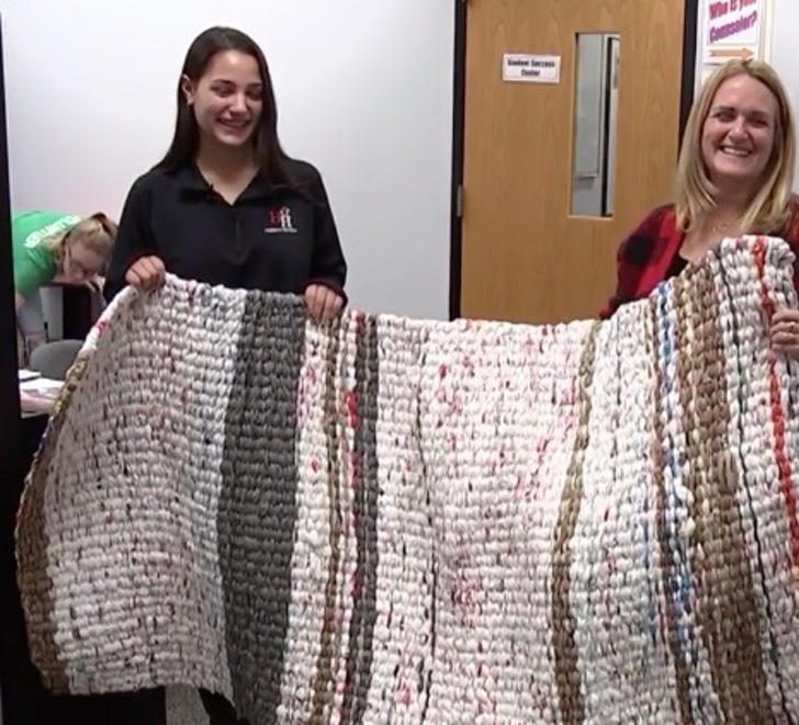 Un solo tapete necesita entre 500 y 700 bolsas para ser acabado, lo que les toma bastante tiempo. Pero esto no le importa a estos estudiantes de buen corazón, pues les encanta ayudar a las personas sin hogar mientras protegen el planeta.