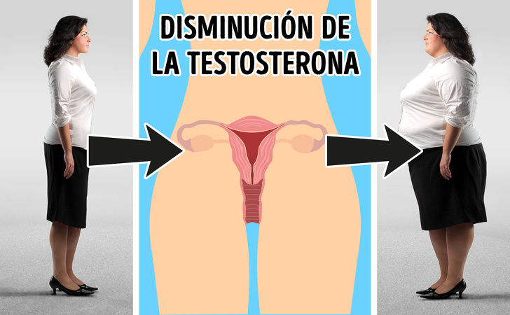 A menudo esta se considera una hormona masculina, pero también es secretada por las mujeres. Ayuda a fortalecer los huesos y músculos, quemar grasas y mejora el líbido. El estrés y la edad causan una disminución significativa en los niveles de testosterona en las mujeres, lo que conlleva una pérdida de densidad ósea y masa muscular, generando obesidad.