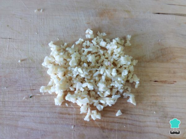 Mientras se cuece el brócoli, pelar y picar los ajos finamente. Consejo: También puede cortar los ajos en láminas si lo prefieres.