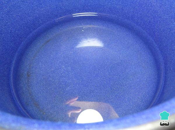 Poner el agua con la pizca de sal en una olla y dejar que hierva a fuego medio.
