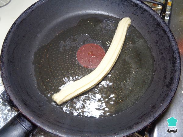Una vez formados los churros caseros los llevamos a freír en un sartén con el aceite muy caliente. Dejamos que se doren completamente.