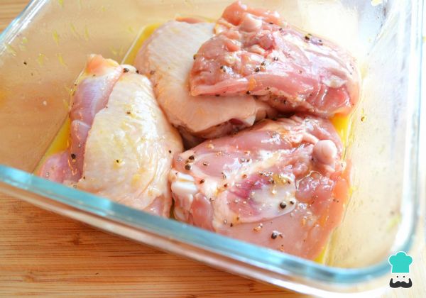 Retira la piel del pollo si deseas reducir la cantidad de grasa de la receta.
