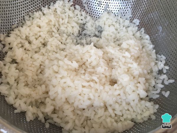 2. Cuece el arroz en abundante agua hirviendo con un poco de sal. Una vez cocido, lo enfrías y reservas.