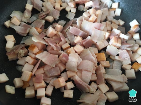3. Es una sartén saltear el jamón cocido y el bacon, así quedarán más sabrosos.