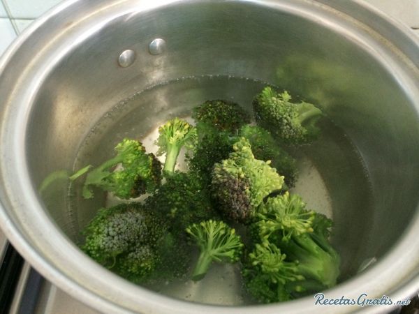 Cocina los arbolitos de brócoli por 10 minutos en una olla con agua hirviendo. Cuando estén blandos, quítales el agua y resérvalos.