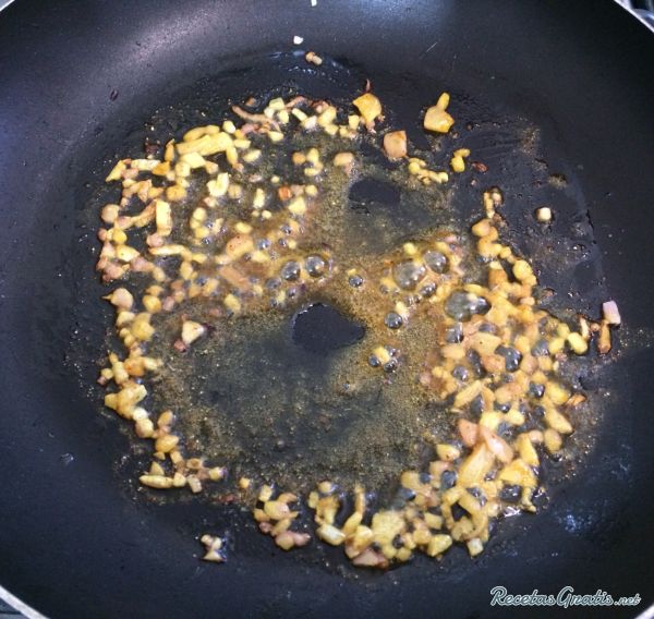 Cocina la cebolla cortada fina en una sartén con aceite a fuego medio. Cuando esté translúcida, agrega el curry y cocina unos minutos más.
