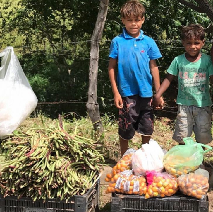 Janailton, de 9 años, y Janailson, de 7 viven en Barreira, en Alagoa Grande, en Brasil. Un presentador de tv los conoció tras ver como vendían verduras a la orilla de un camino para ganar dinero para su hogar y esto llegó al portal Razões para Acreditar.