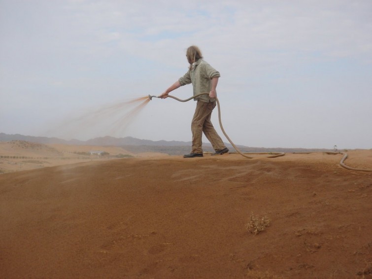 El científico noruego, Kristian Morten Olesen, patentó un proceso que mezcla nanopartículas de arcilla con agua y las une a partículas de arena para acondicionar el suelo del desierto, creando un producto llamado Liquid Nanoclay (LNC), que transforma los suelos arenosos desérticos en tierras fértiles.
